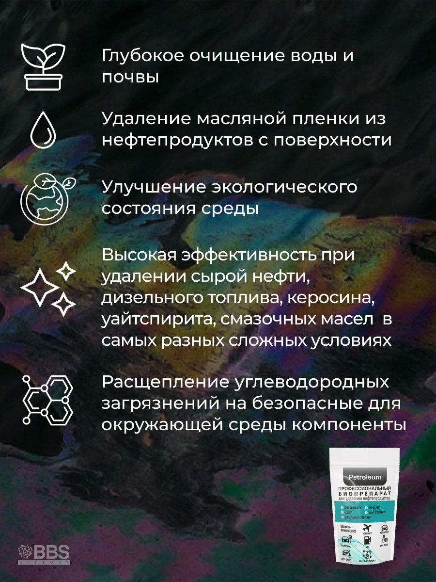 BBS Petroleum -биоактиватор для удаления масел и нефтепродуктов из почвы и сточных вод 3 кг