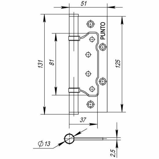 Петля универсальная без врезки Punto 200-2B 125x2,5 PB латунь