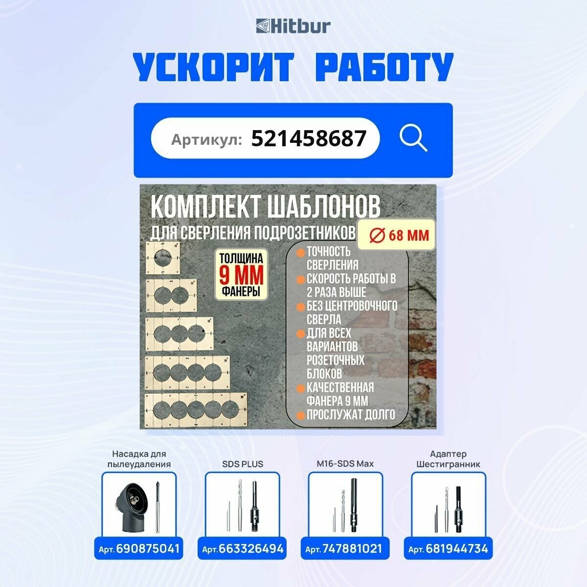 СохранитьКоронка по бетону и кирпичу 68 мм алмазная для подрозетников Hitbur с верхним пылеудалением и держателем SDS Plus интересное: