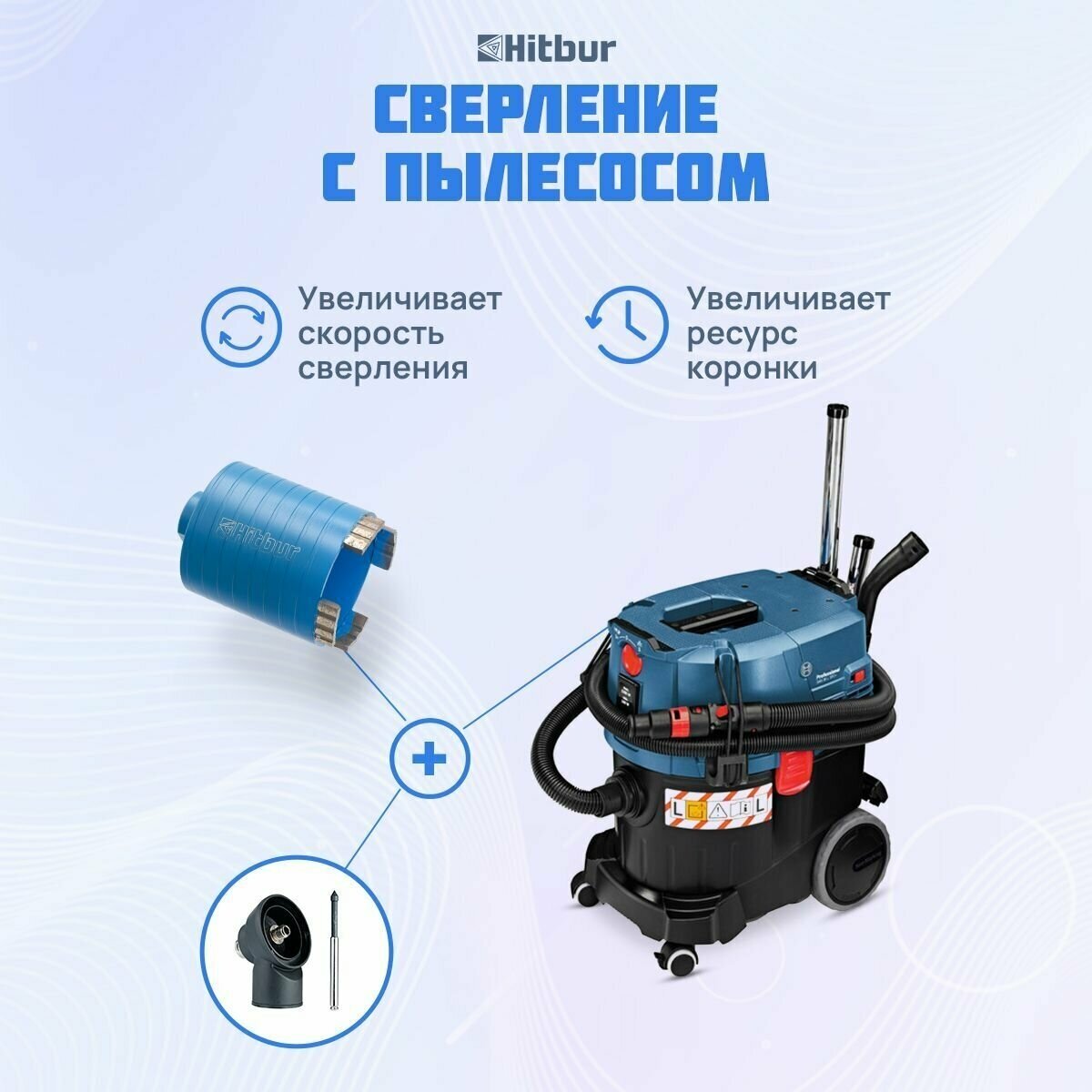 Коронка по бетону и кирпичу 72 мм алмазная для подрозетников Hitbur с боковым пылеудалением и держателем SDS Plus