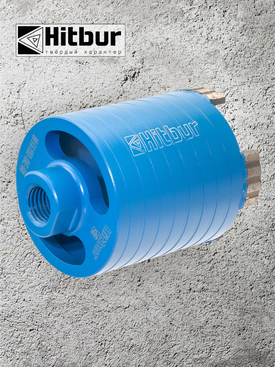 Коронка по бетону и кирпичу 68 мм алмазная для подрозетников Hitbur с боковым пылеудалением и держателем SDS Plus