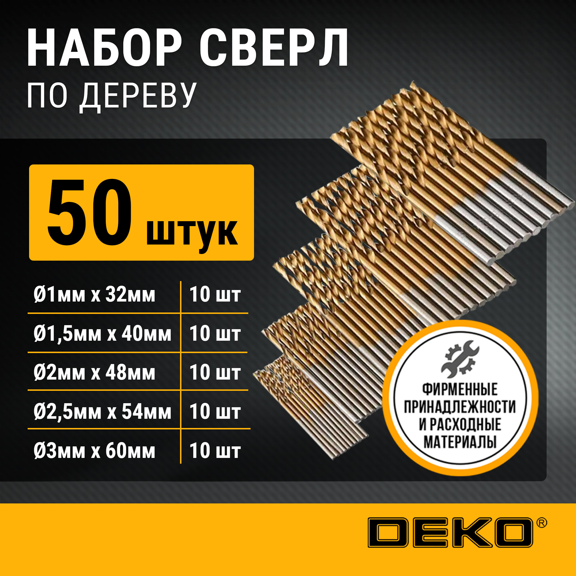Набор сверл по дереву DS50 (50 шт; 1-3 мм) Deko 065-0744 .