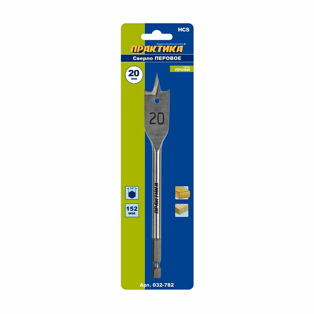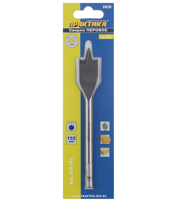 Купить Сверло по дереву перовое ПРАКТИКА 20 х 152 мм (1шт.), шестигранный хвостовик