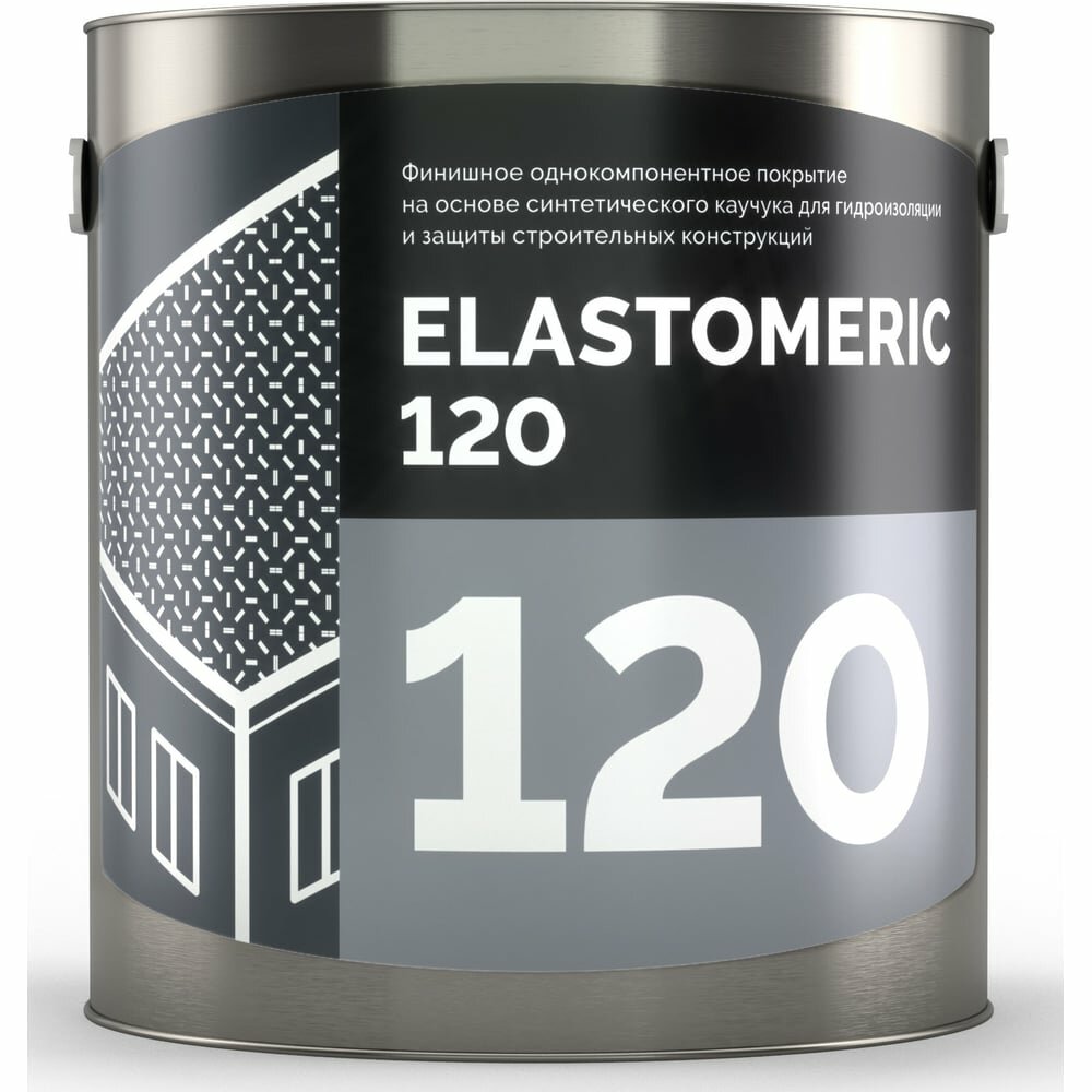 Гидроизоляция для плоской крыши ELASTOMERIC 120, мастика гидроизоляционная однокомпонентная (жидкая резина для кровли) финишный слой, серый, 20кг