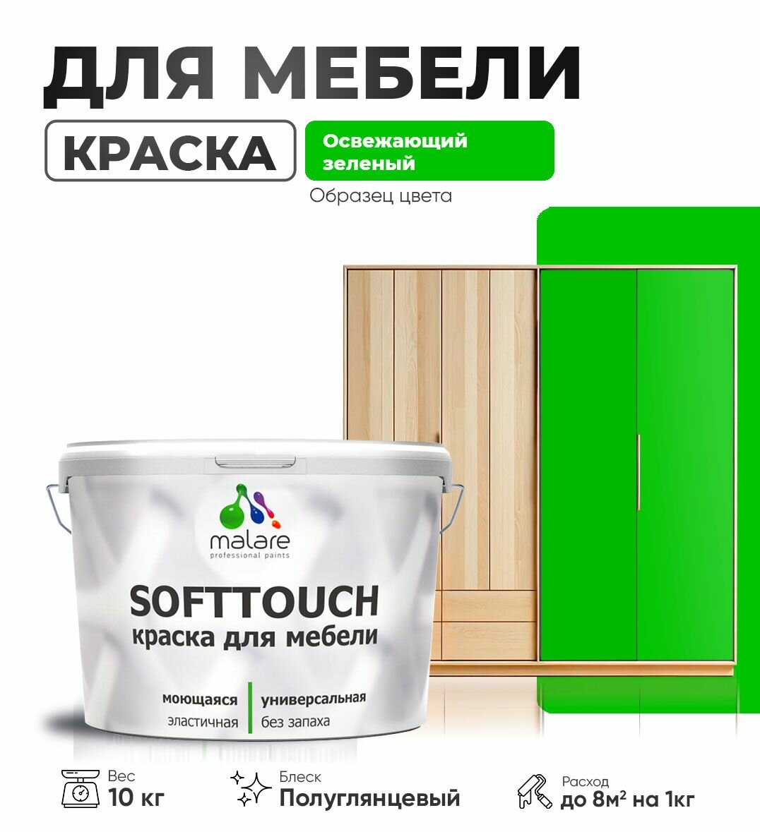 Купить Резиновая краска для мебели Malare SoftTouch для кухонных фасадов для дерева и МДФ, моющаяся быстросохнущая, полуглянцевая, освежающий зеленый, 10 кг