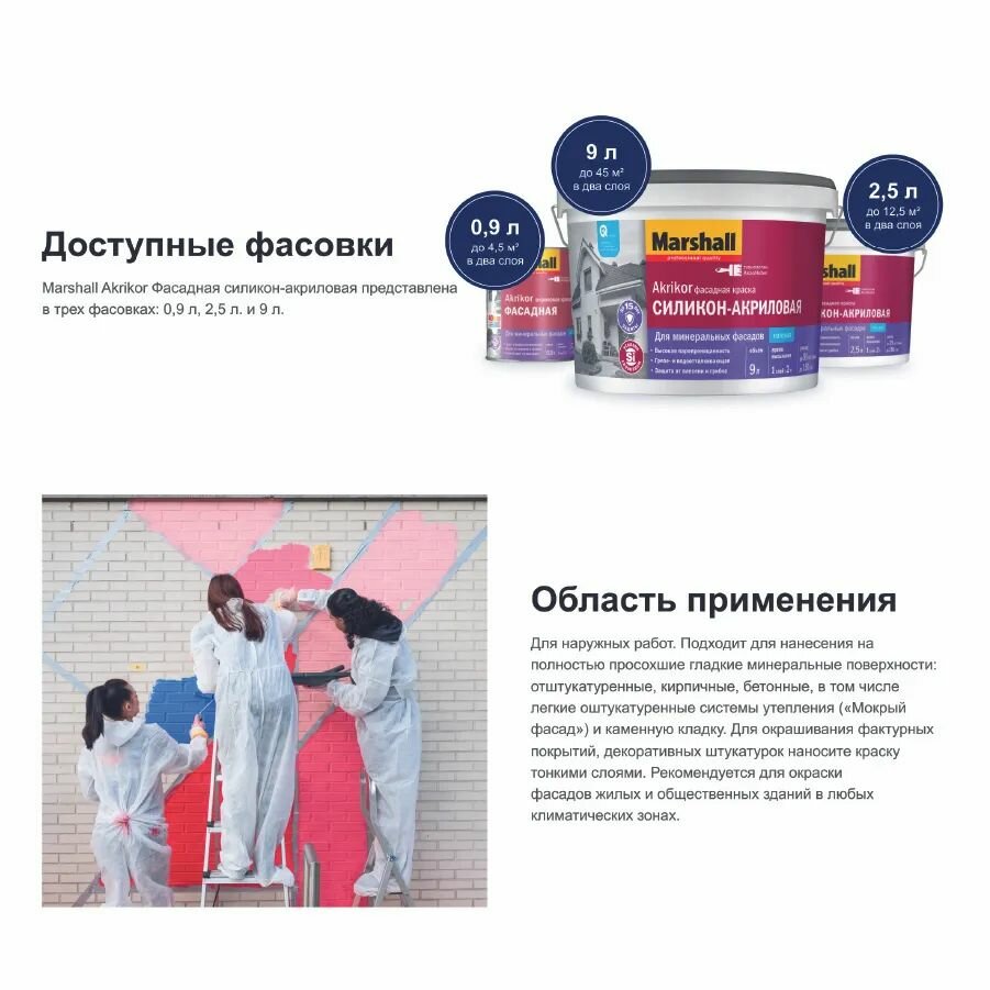 Фасадная краска Marshall Paints Marshall Akrikor, силикон-акриловая, матовая база BW 2.5 л.