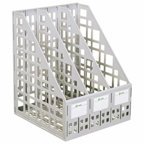 Лоток вертикальный для бумаг СТАММ, ширина 240 мм, 3 отделения, сетчатый, сборный, серый