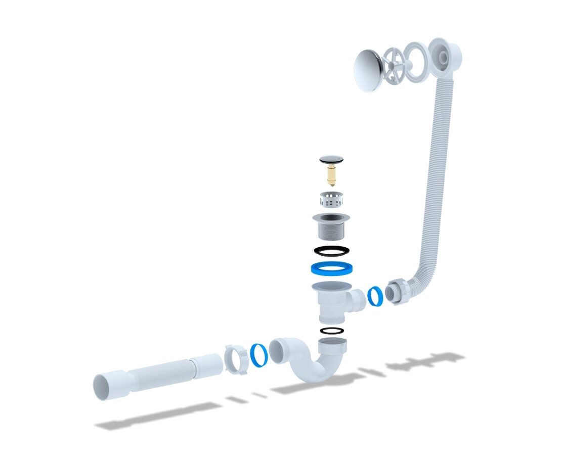 Сифон для ванны АНИ пласт EC155S, автомат, прямоточный, с отводной гибкой трубой 40х50х375мм, с сеткой интересное: