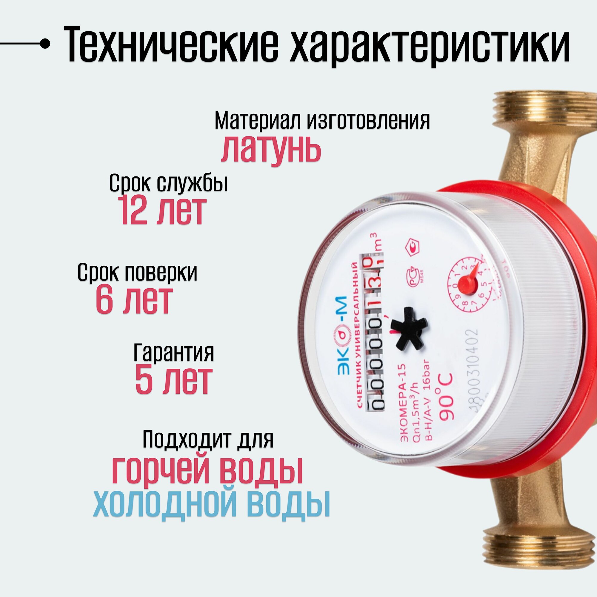 Счетчик воды Экомера-15 (D-15мм, L-110мм) без кмч интересное: