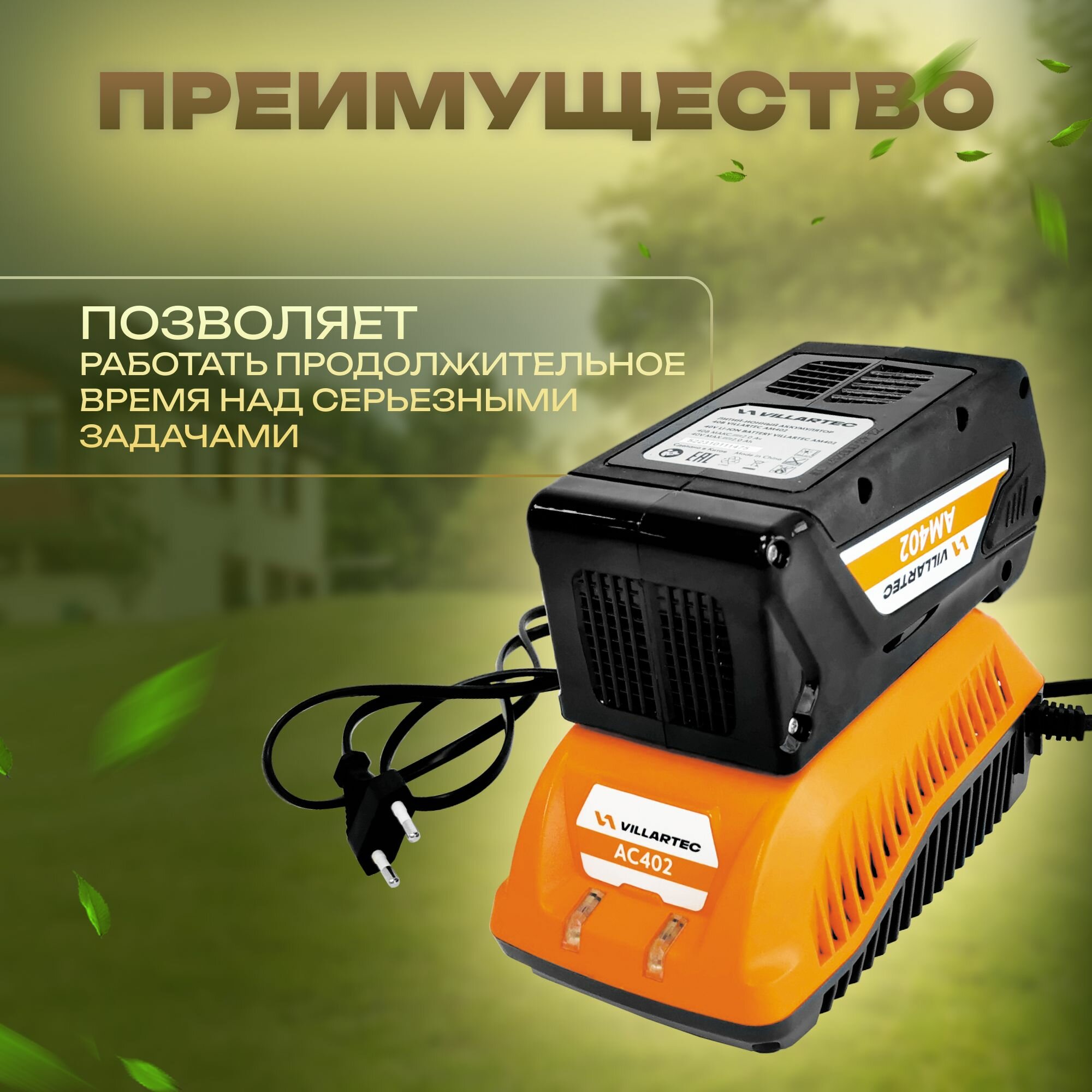 Зарядное устройство для литий-ионных аккумуляторов 40 В VILLARTEC арт AC402 интересное:
