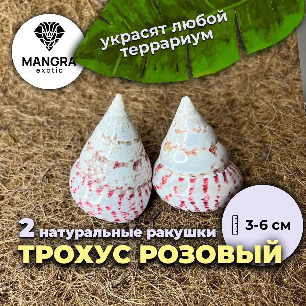 Сохранить2 натуральные ракушки MANGRA exotic Трохус розовый (3-6 см) - декор для террариума + укрытие интересное: