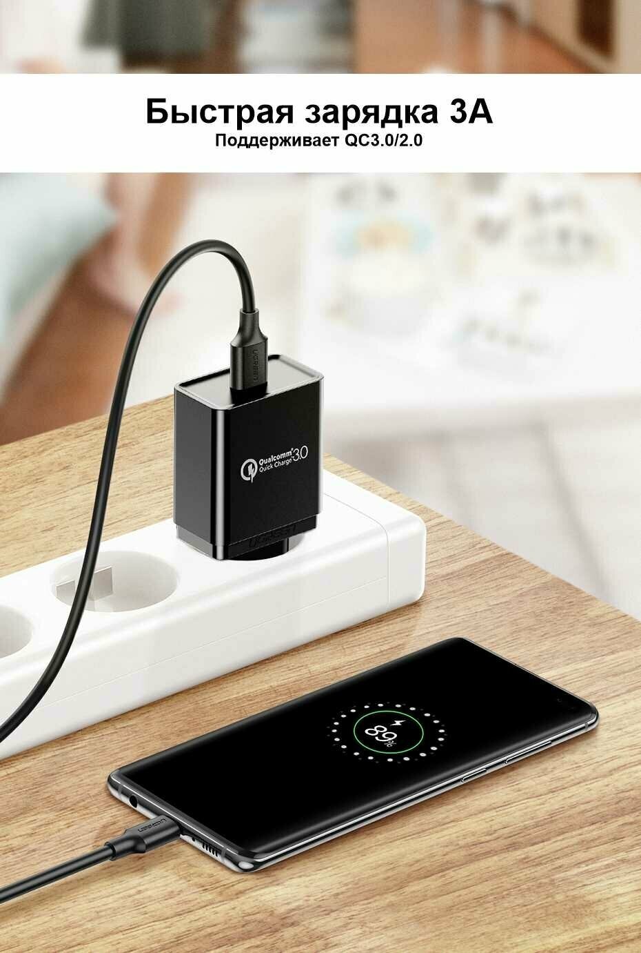 Кабель для зарядки и передачи данных USB-C Male - USB 3.0 A Ugreen, 3A, 1м, цвет черный (20882)