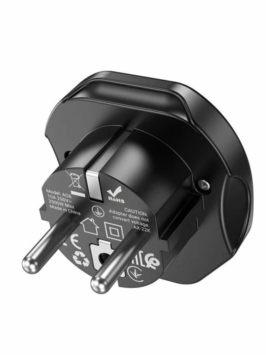 Сетевой переходник адаптер для евророзетки Hoco AC6 10А 250В черный