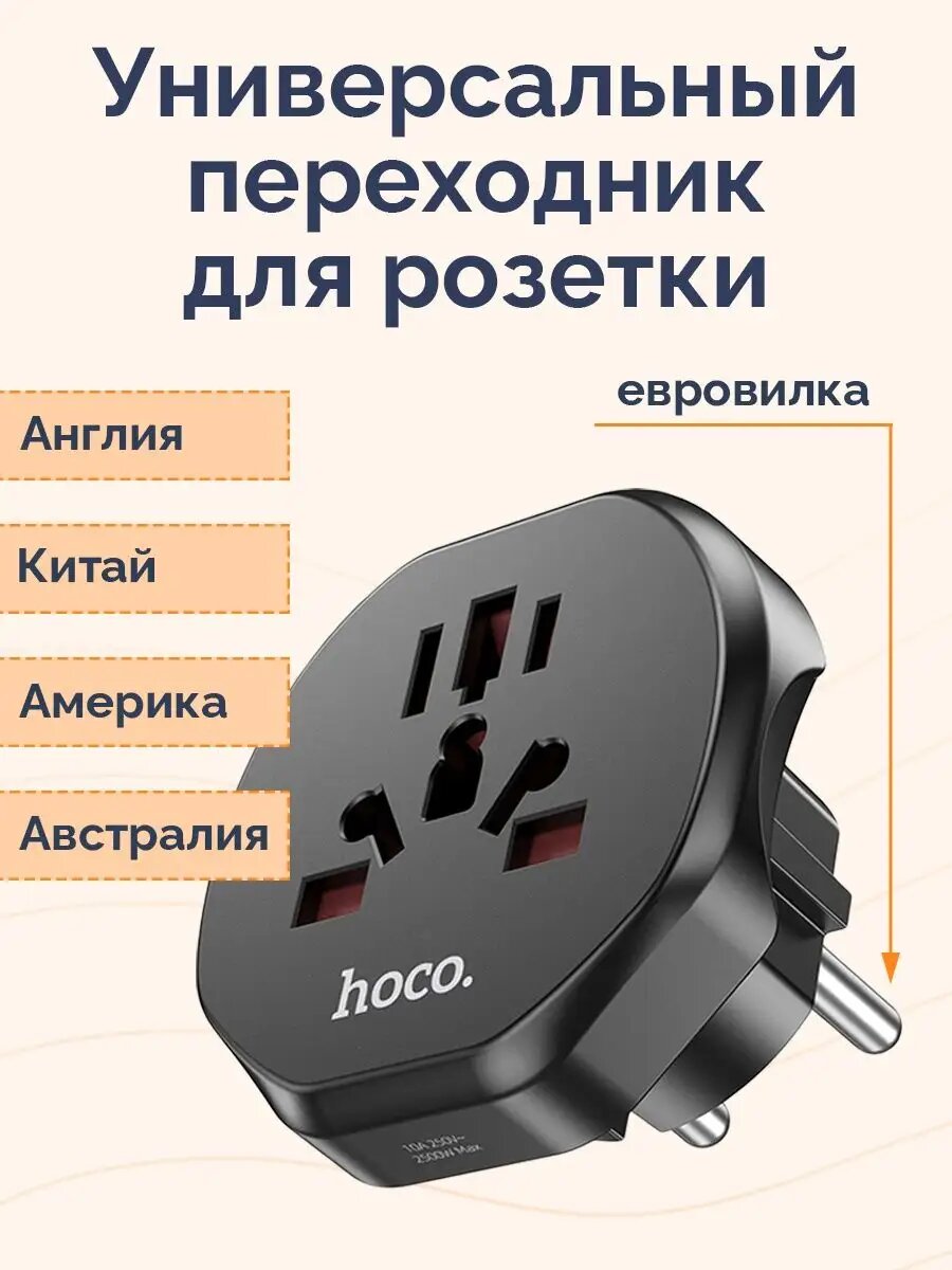 Переходник для зарядных устройств Hoco "AC6", огнестойкий, черный, 250 Вт, 10 А интересное: