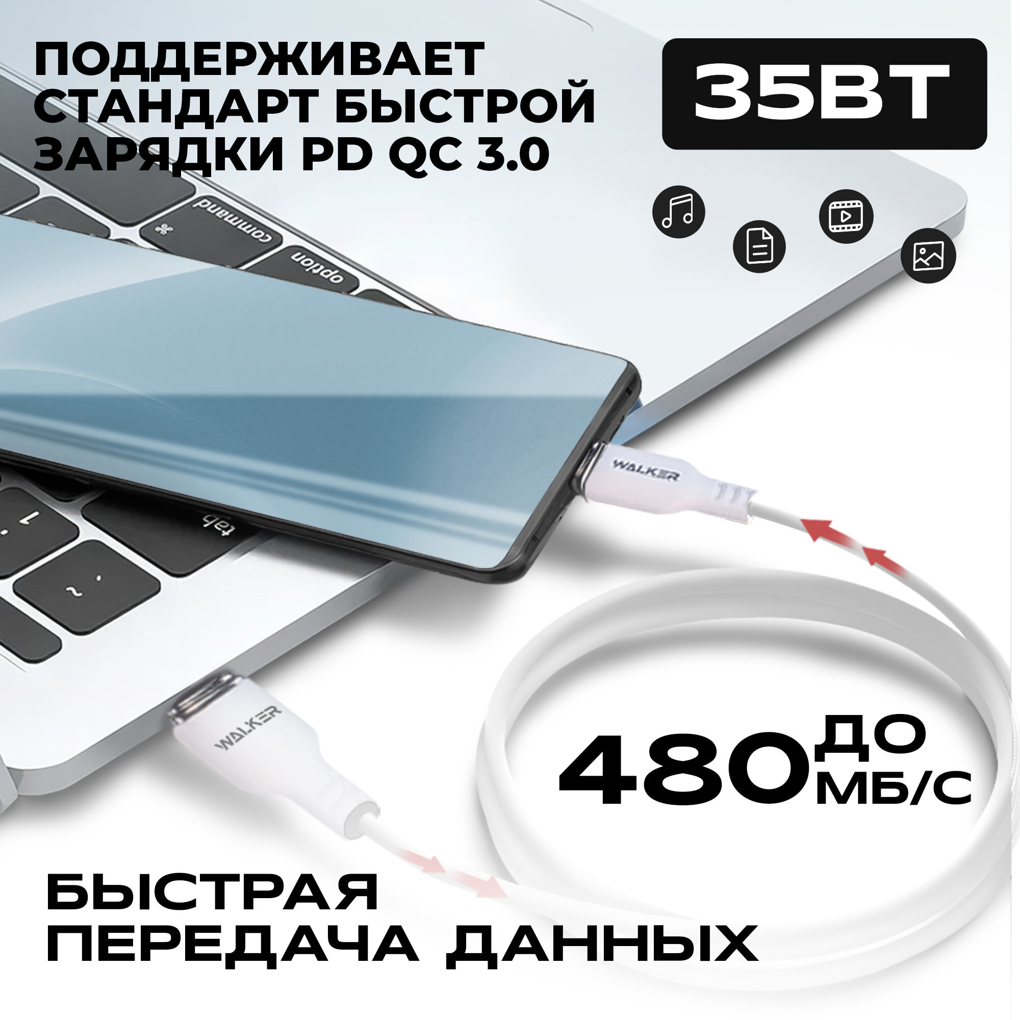 СохранитьКабель для зарядки и передачи данных USB Type-C - Lightning "WALKER" C795 35W 3.3A, 1 м, мягкий силиконовый провод переходник лайтинг для айфона, белый интересное: