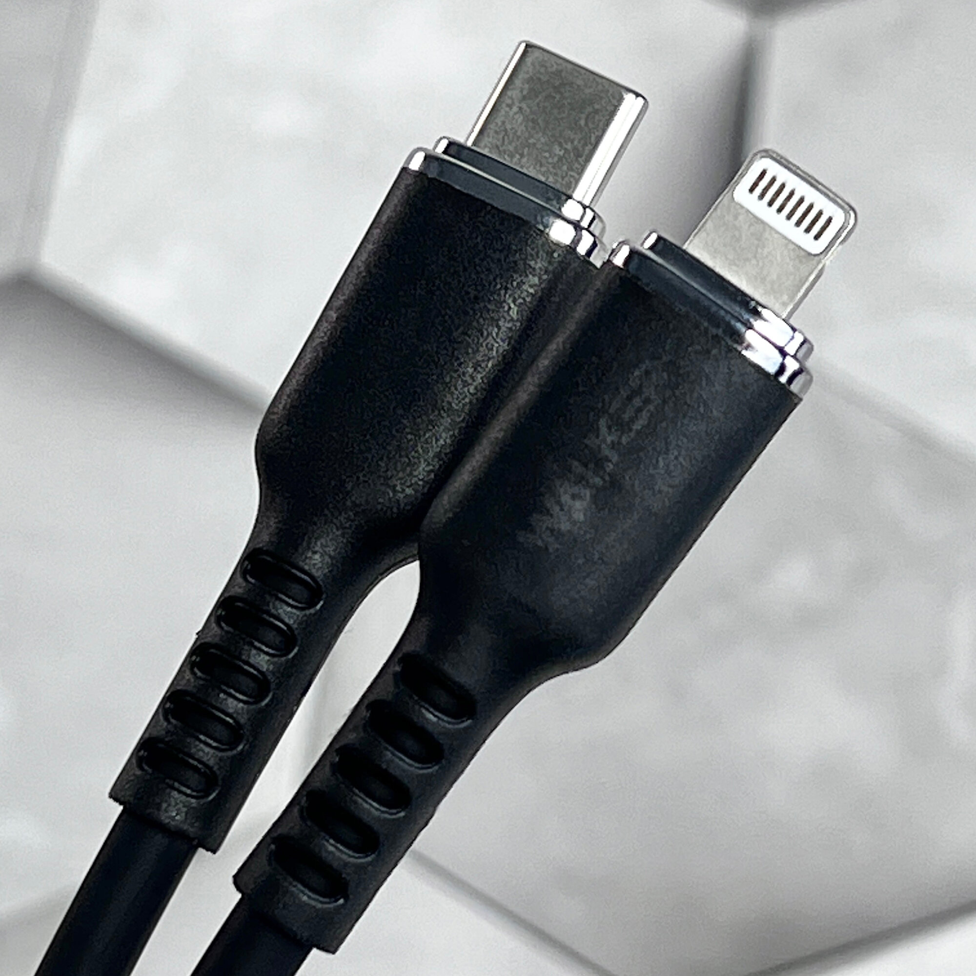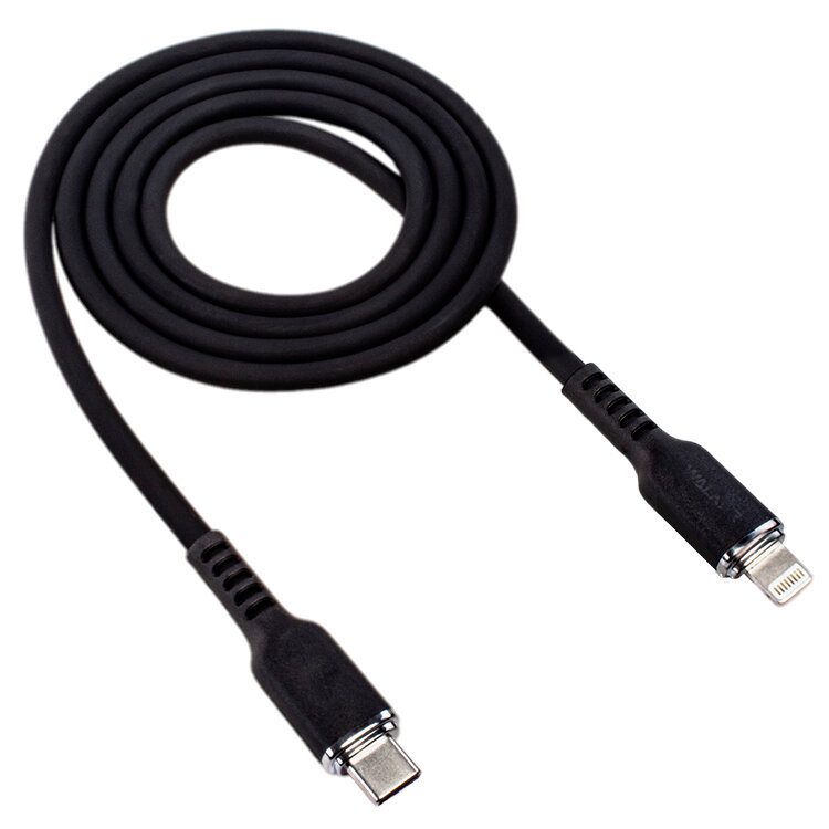 Кабель для зарядки и передачи данных USB Type-C - Lightning "WALKER" C795 35W 3.3A, 1 м, мягкий силиконовый провод переходник лайтинг для айфона, черный