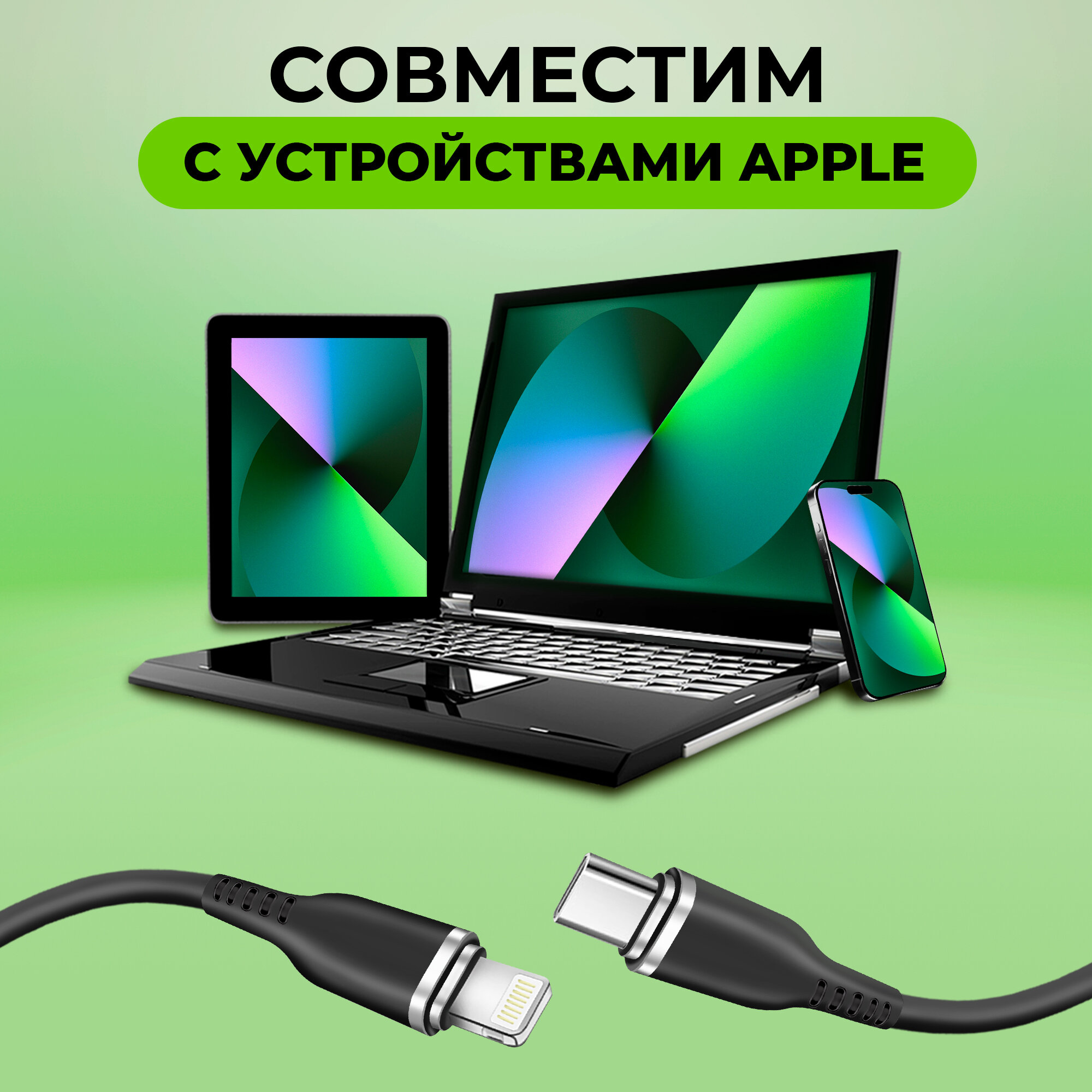 СохранитьКабель для зарядки и передачи данных USB Type-C - Lightning "WALКЕR" C795 35W 3.3A, 1 м, мягкий силиконовый провод переходник лайтинг для айфона, черный интересное: