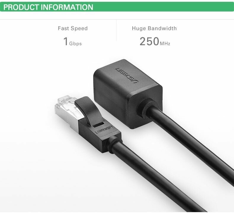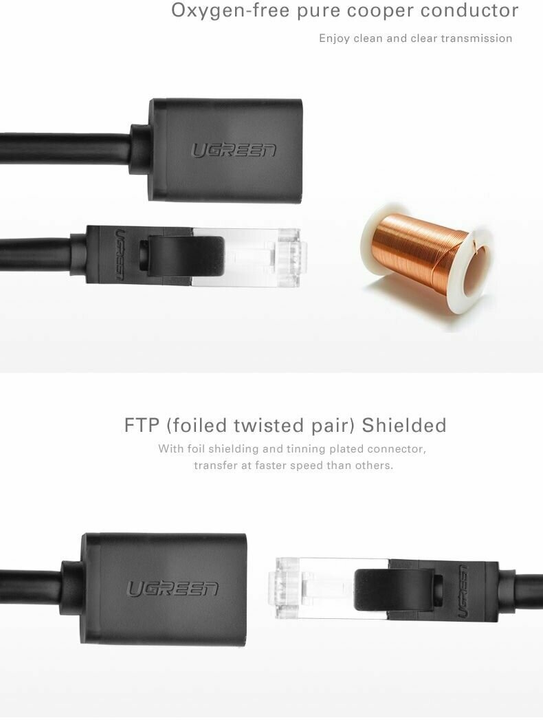 Удлинитель UGREEN NW112 (11279) Cat 6 F/UTP Ethernet RJ45 Extension Male/Female Patch Cords. Длина 1 м. Цвет: черный