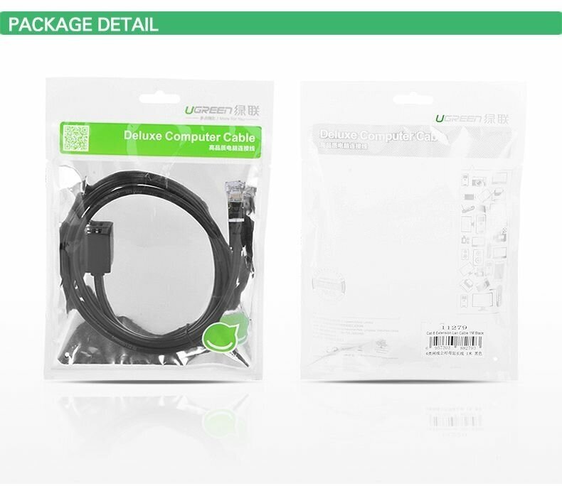 | Дополнительная информация | Удлинитель UGREEN NW112 (11281) Cat 6 F/UTP Ethernet RJ45 Extension Male/Female Patch Cords. Длина: 2м. Цвет: черный |
