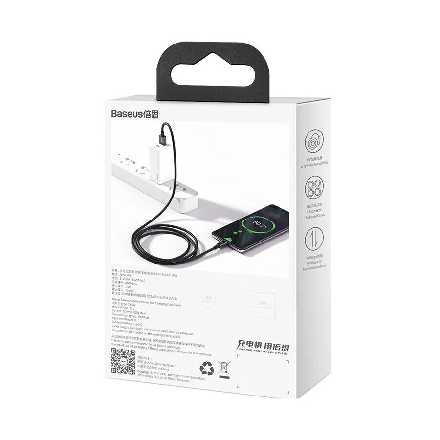Кабель Baseus Superior Series Fast Charging, USB - Type-C, (CATYS-01) 66W, 1 м, черный