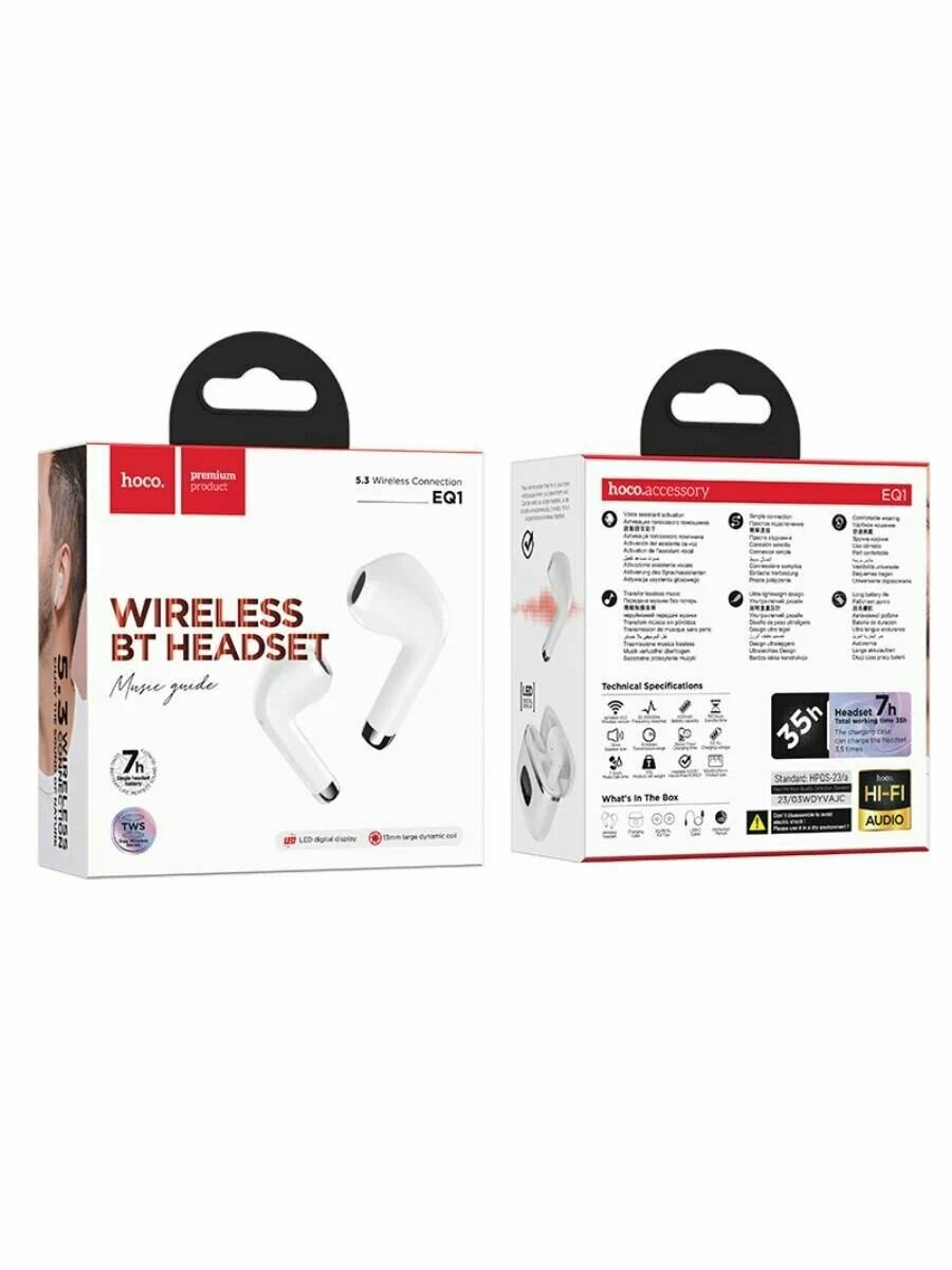 Беспроводные наушники Hoco EQ1, TWS, LED Display, BT5.3, белый
