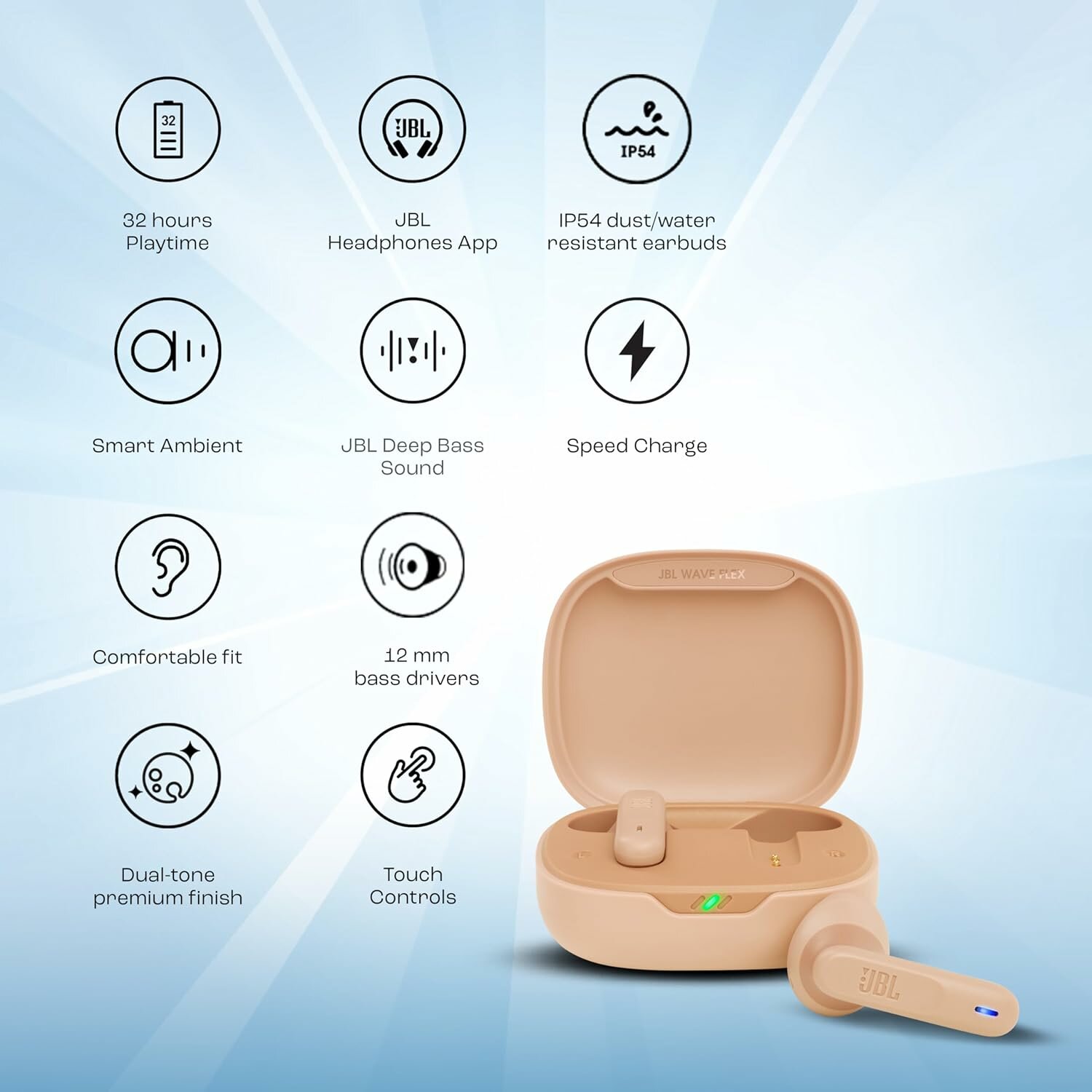 Беспроводные наушники JBL Wave Flex бежевый золотистый Golden beige, Global, сенсорное управление, ANC, влагозащита интересное: