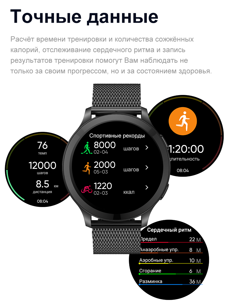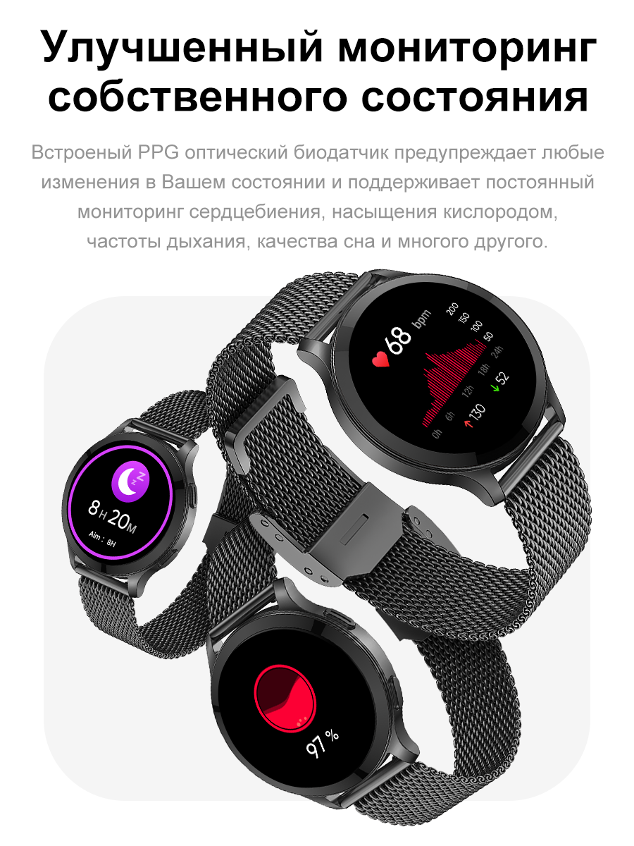 | Мониторинг | ЭКГ, акселерометр, калорий, пульса, сна, термометр, уровня кислорода в крови, физической активности |
