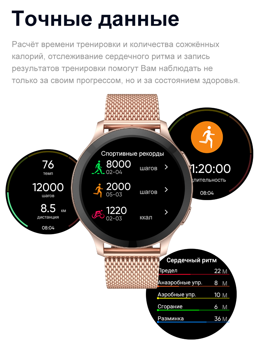 | Мониторинг | ЭКГ, акселерометр, калорий, пульса, сна, термометр, уровня кислорода в крови, физической активности |