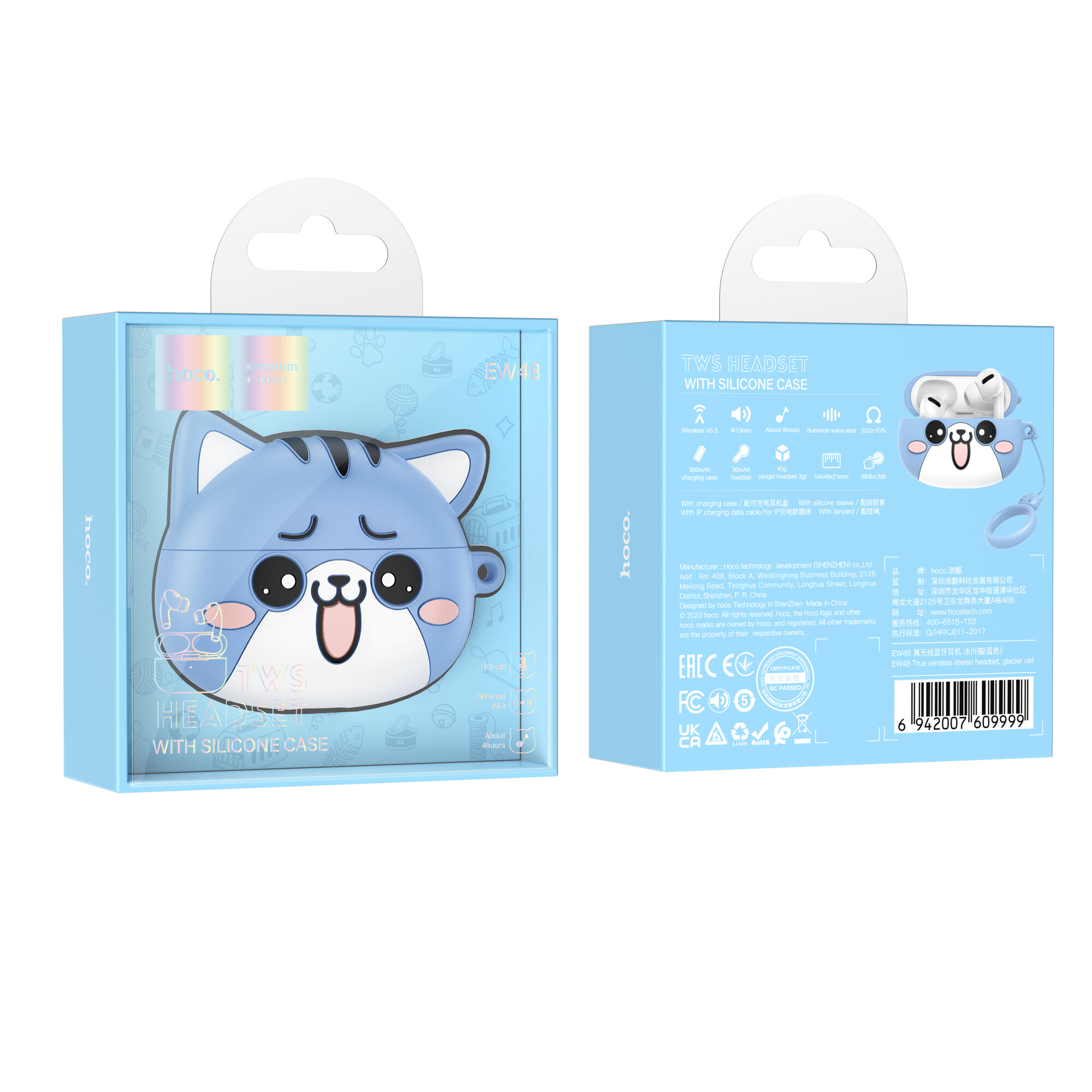 TWS гарнитура HOCO EW48 BT 5.3, внутриканальная (голубой), кейс "Котик" с брелоком