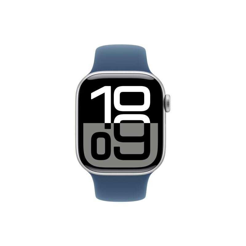 Apple Watch S10 42 silver aluminium case with M/L denim sport band