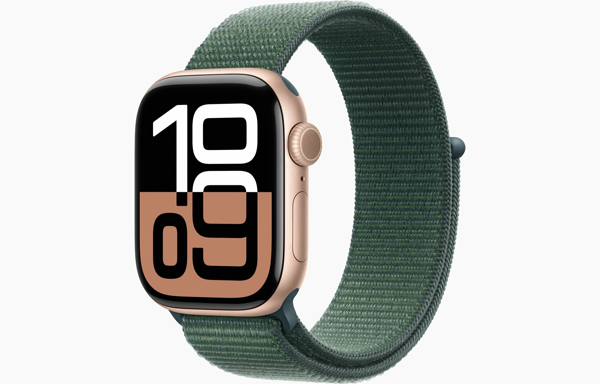Купить Умные часы Apple Watch Series 10 46 мм GPS One Size, Rose Gold Aluminum Case, Lake Green Sport Loop
