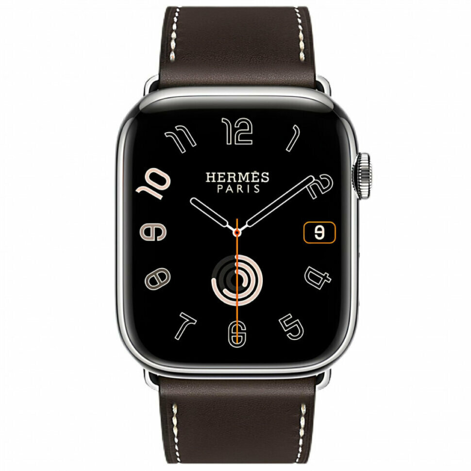 Часы Apple Watch Hermès Series 10 GPS + Cellular 42mm Natural Titanium Case with Orange Field Hapi Attelage Duoble Tour оригинал