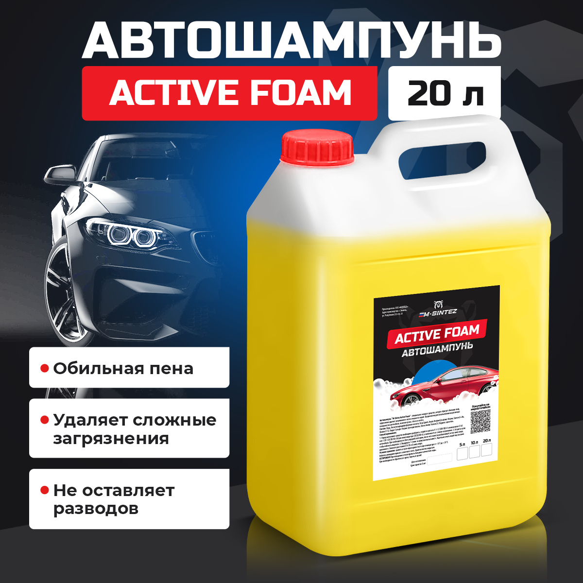 Купить Автошампунь M-SINTEZ Active Foam, концентрат, 20 л, бесконтактная и ручная мойка