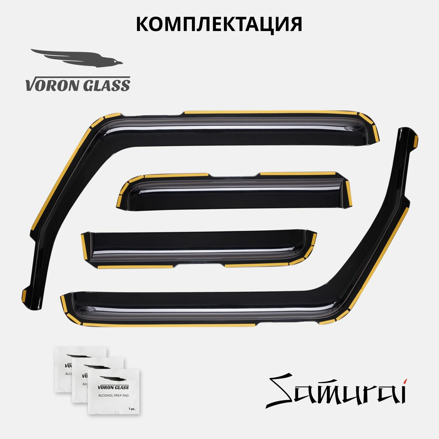 Дефлекторы окон /ветровики/ неломающиеся Voron Glass серия Samurai для Lada / ВАЗ 2121 Niva 3d 1977-н. в. /кроссовер /накладные /к-т 2шт/
