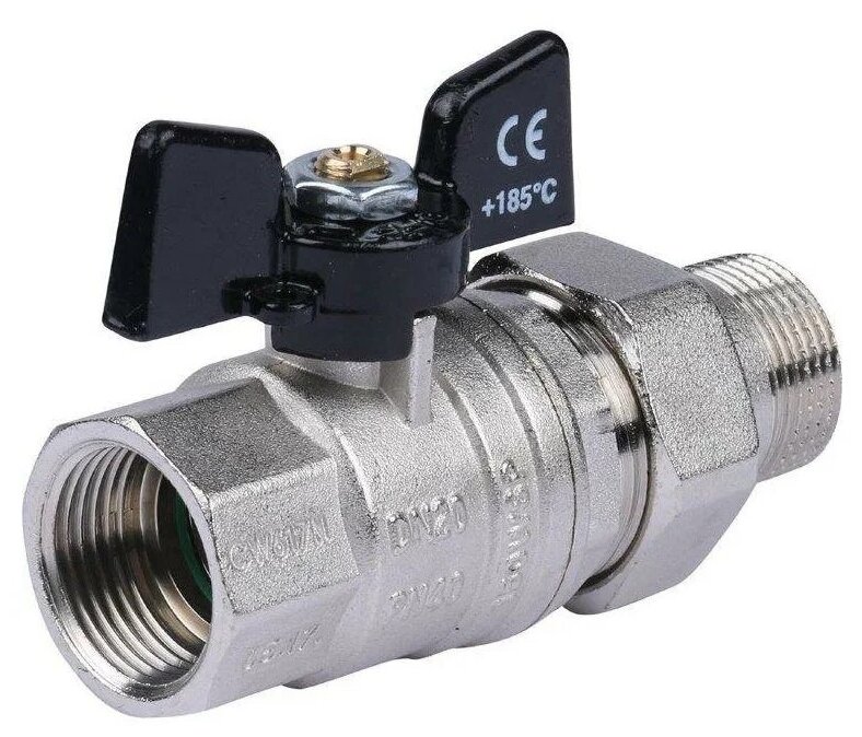 Кран шаровой Bugatti Oregon американка, полнопроходной 3/4" НР-ВР бабочка (03220032)