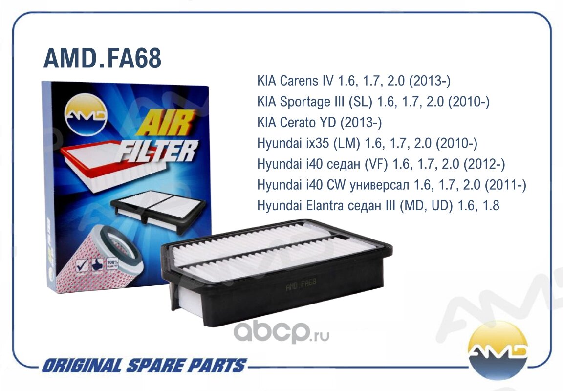 Фильтр воздушный 281133X000 AMD. FA68 для HYUNDAI Elantra MD, UD ix 35 LM KIA Sportage SL Cerato YD интересное: