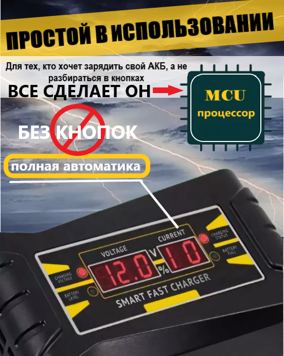 Автоматическое зарядное устройство 12В/10А Black для автомобильного аккумулятора интересное:
