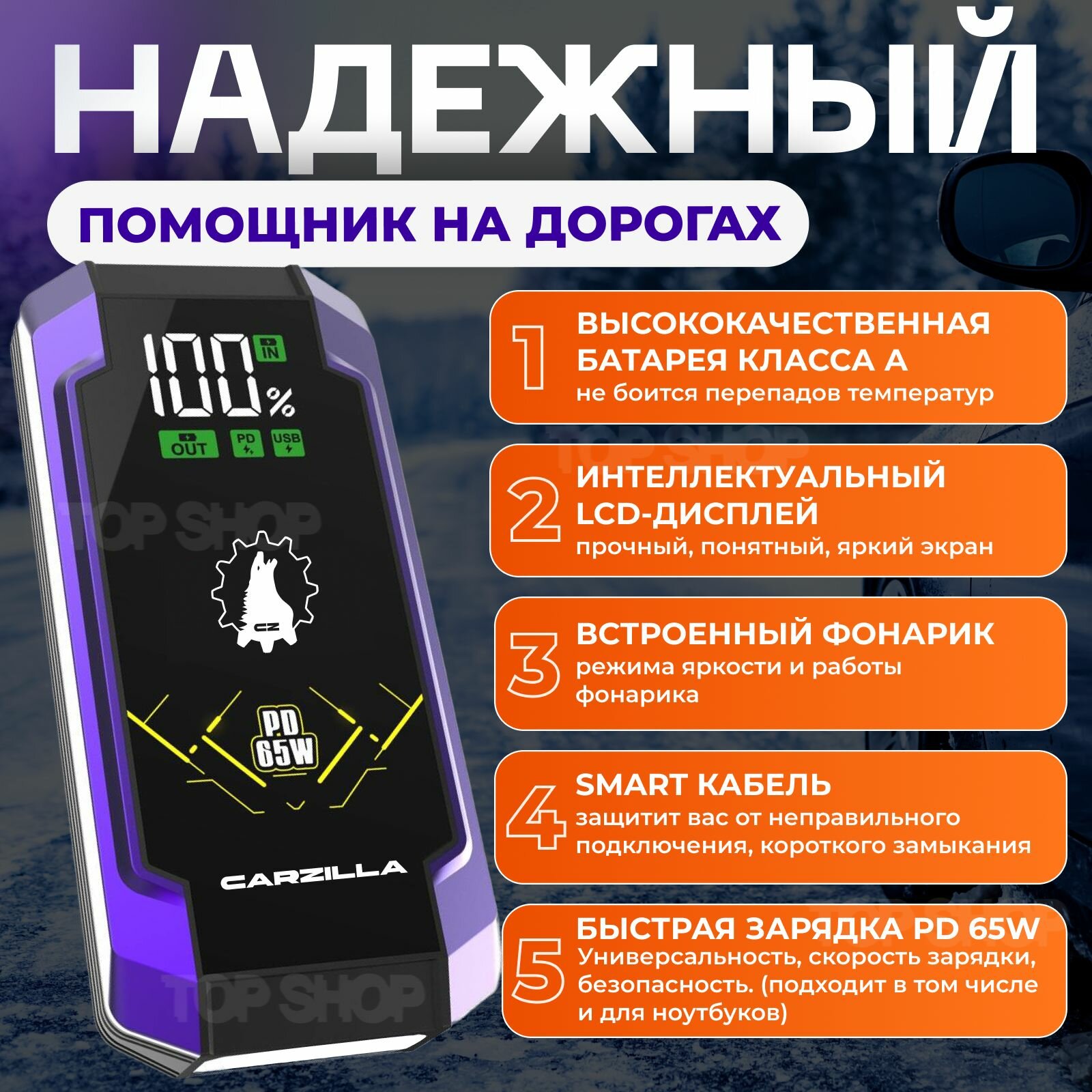 Пусковое устройство для автомобиля Carzilla / 20 000 мАч, пусковой ток 3000А / 4в1: ПЗУ, компрессор, powerbank, LED-фонарь