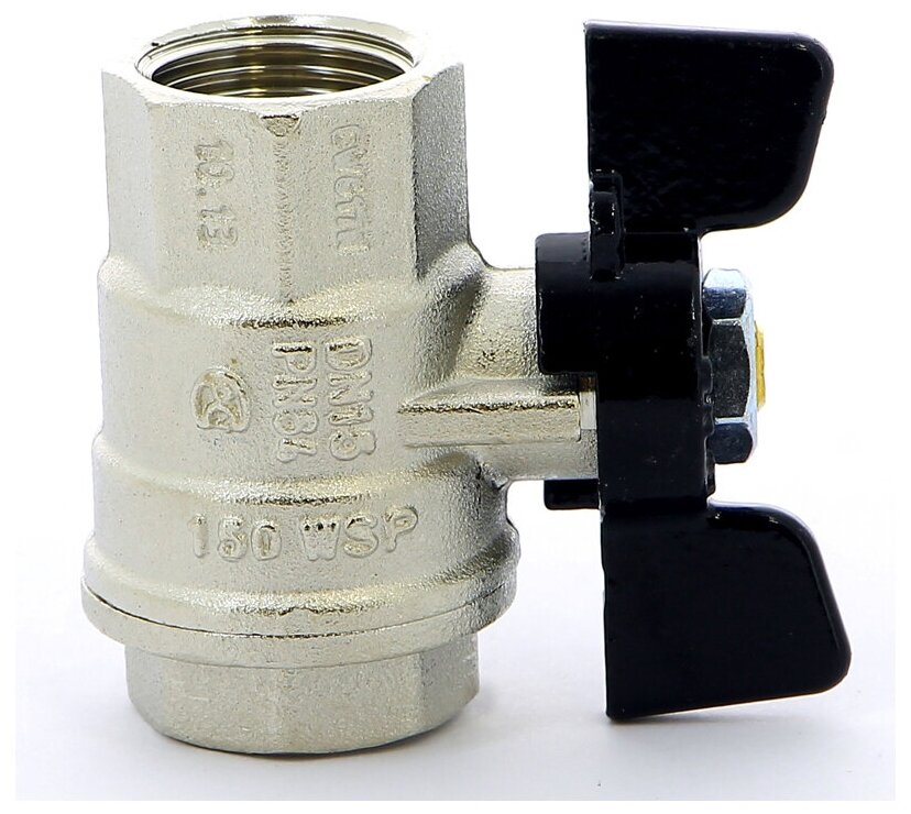 Кран шаровой полнопроходной Bugatti Oregon 302 - 1'1/4 (ВР/ВР, PN25, ручка-бабочка черная) 03020077