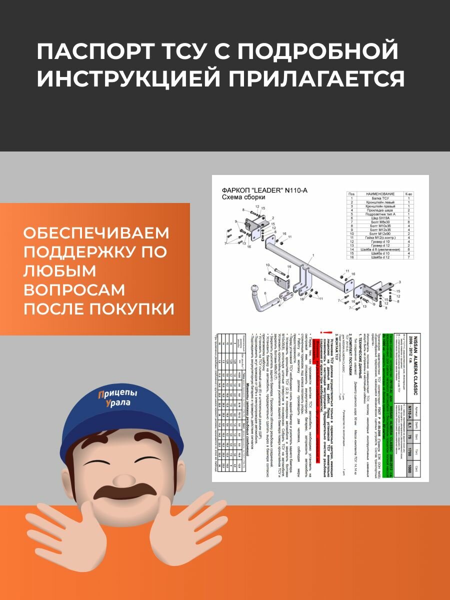 Фаркоп для Nissan Almera Classic (2006-2012) Лидер-Плюс N110-A интересное: