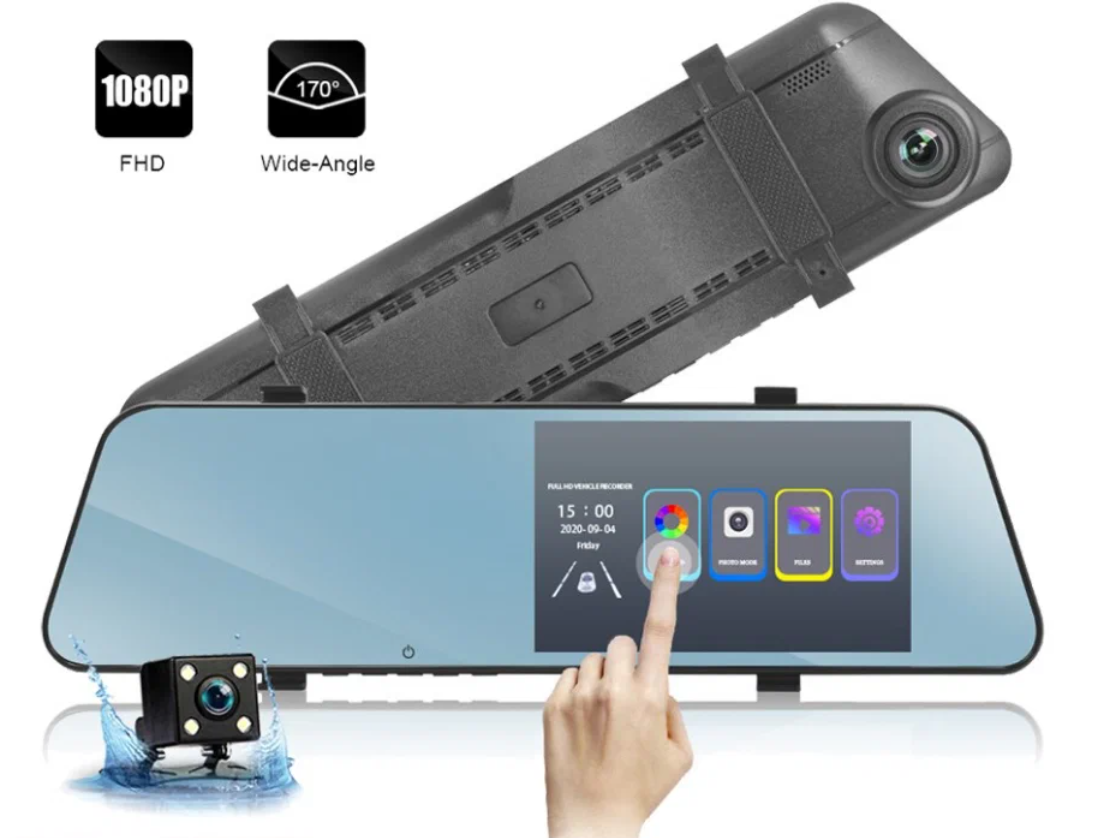Автомобильный видеорегистратор - зеркало с камерой заднего вида/ IPS HD экран с сенсорным управлением/ G-сенсор/ Black интересное: