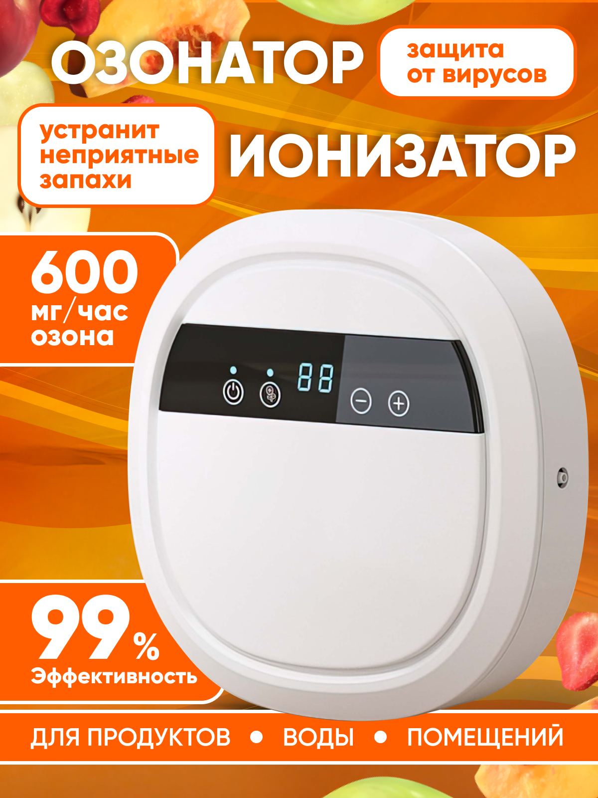 Озонатор 500 мг/час, 220AC/12DC с таймером. Очиститель и очиститель воздуха, воды, продуктов и холодильника, охват до 50 м2. Озонатор для дома.