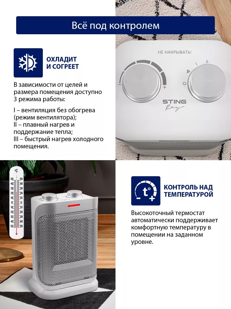 Тепловентилятор StingRay ST-FH1053A 2000 Вт, керамический до 20 Кв. м