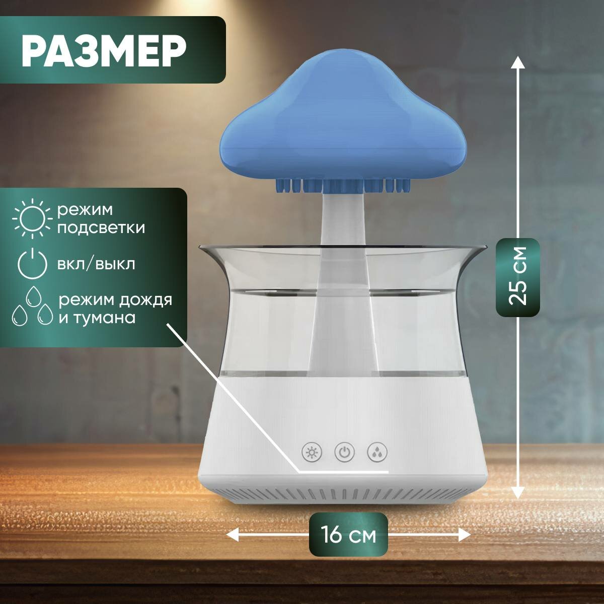 Увлажнитель воздуха для дома Гриб. Аромадиффузор настольный, ультразвуковой, портативный. Ночник с эффектом дождя интересное:
