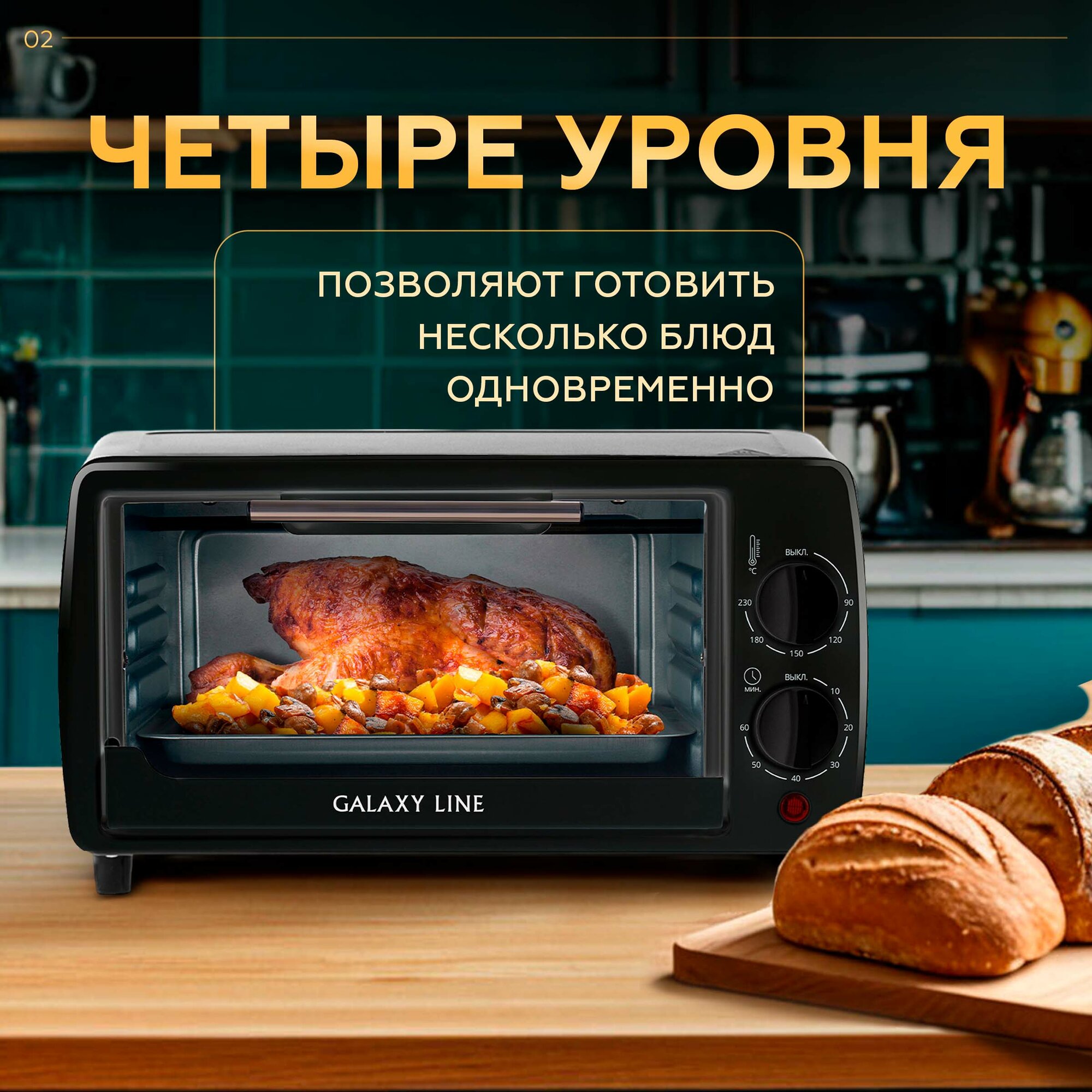 Печь GALAXY LINE GL2625, Мини-печь черная, механическое управление интересное: