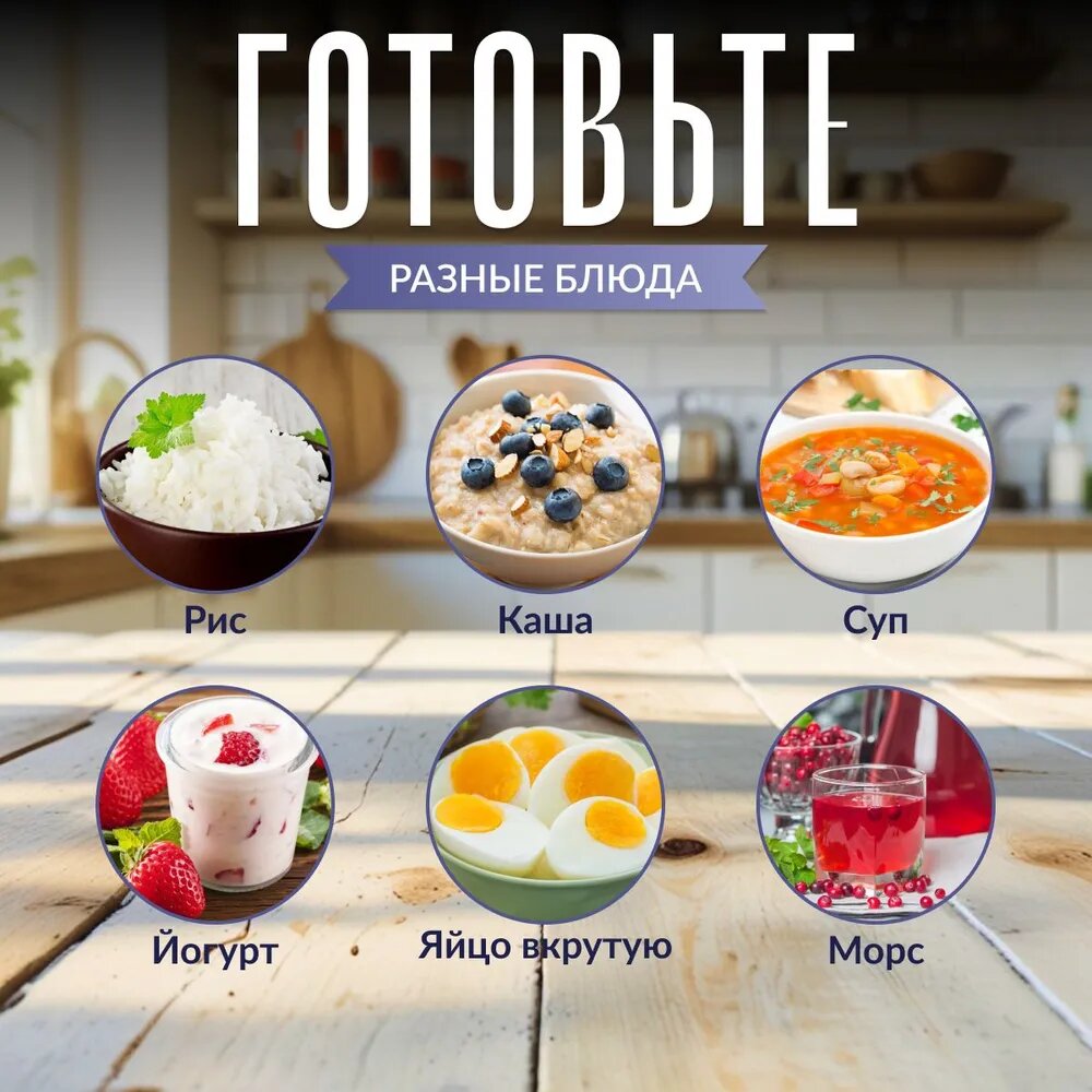 | Программы | варка, выпечка, йогурт, молочная каша, мясо, овощи |