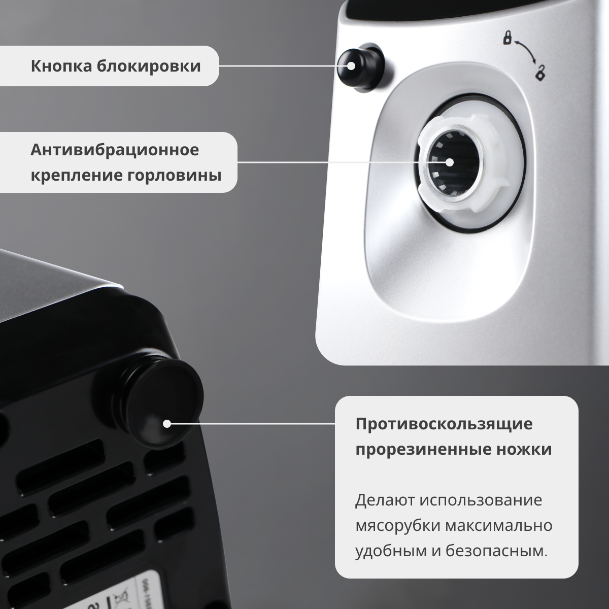 Электрическая мясорубка с овощерезкой, 1 скорость + реверс, мощность 3000 Вт, серебристая интересное: