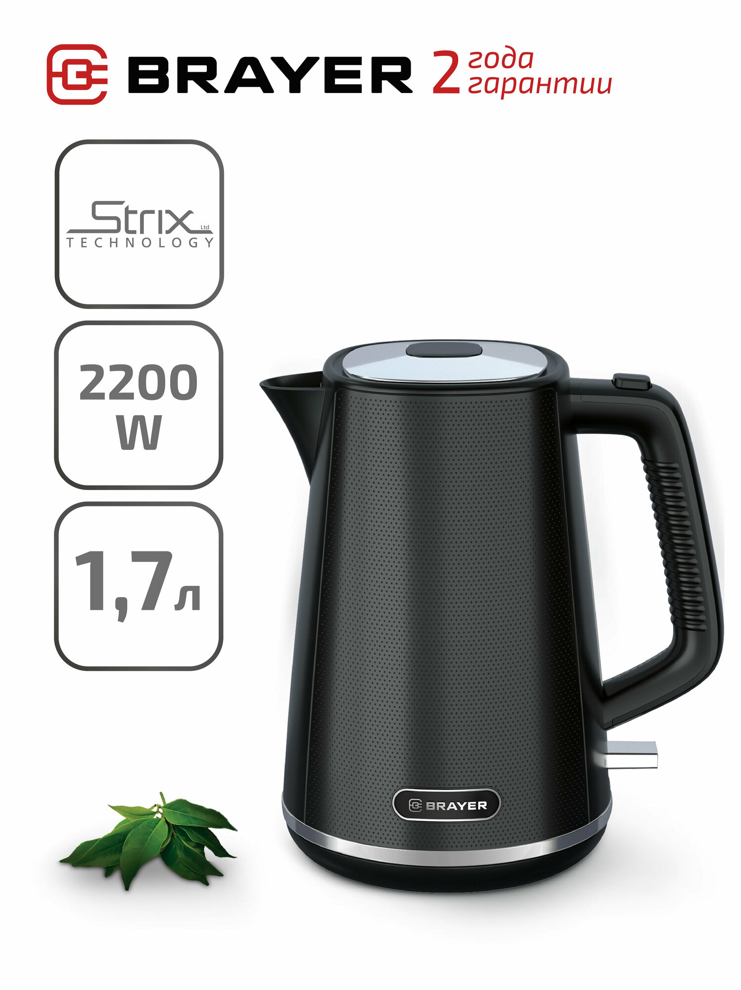 Электрический чайник Brayer BR1072, пластик, чёрный, 1,7л, 2200 Вт интересное: