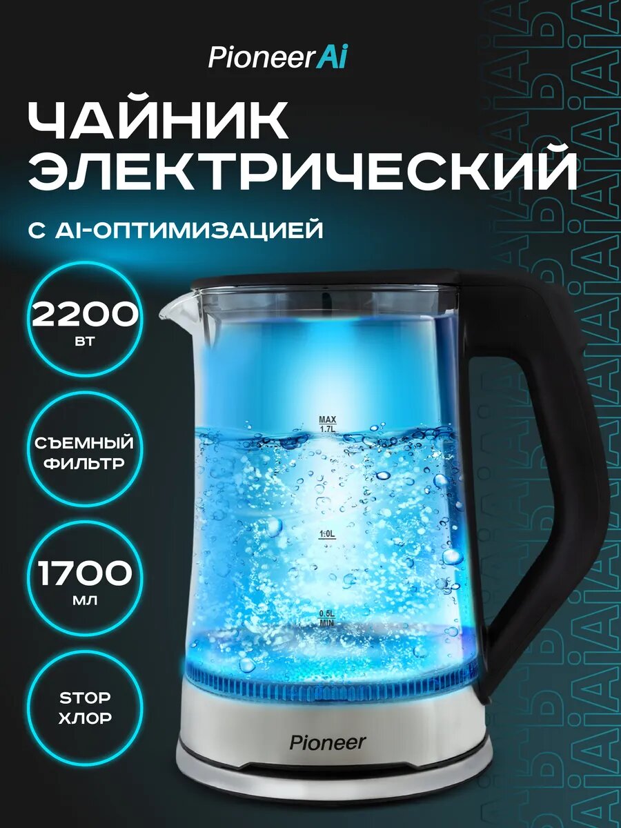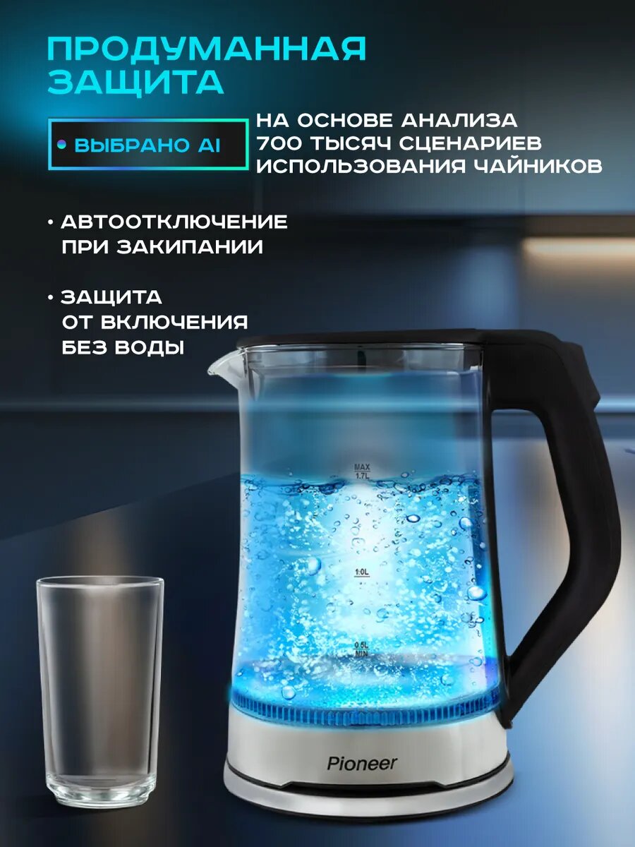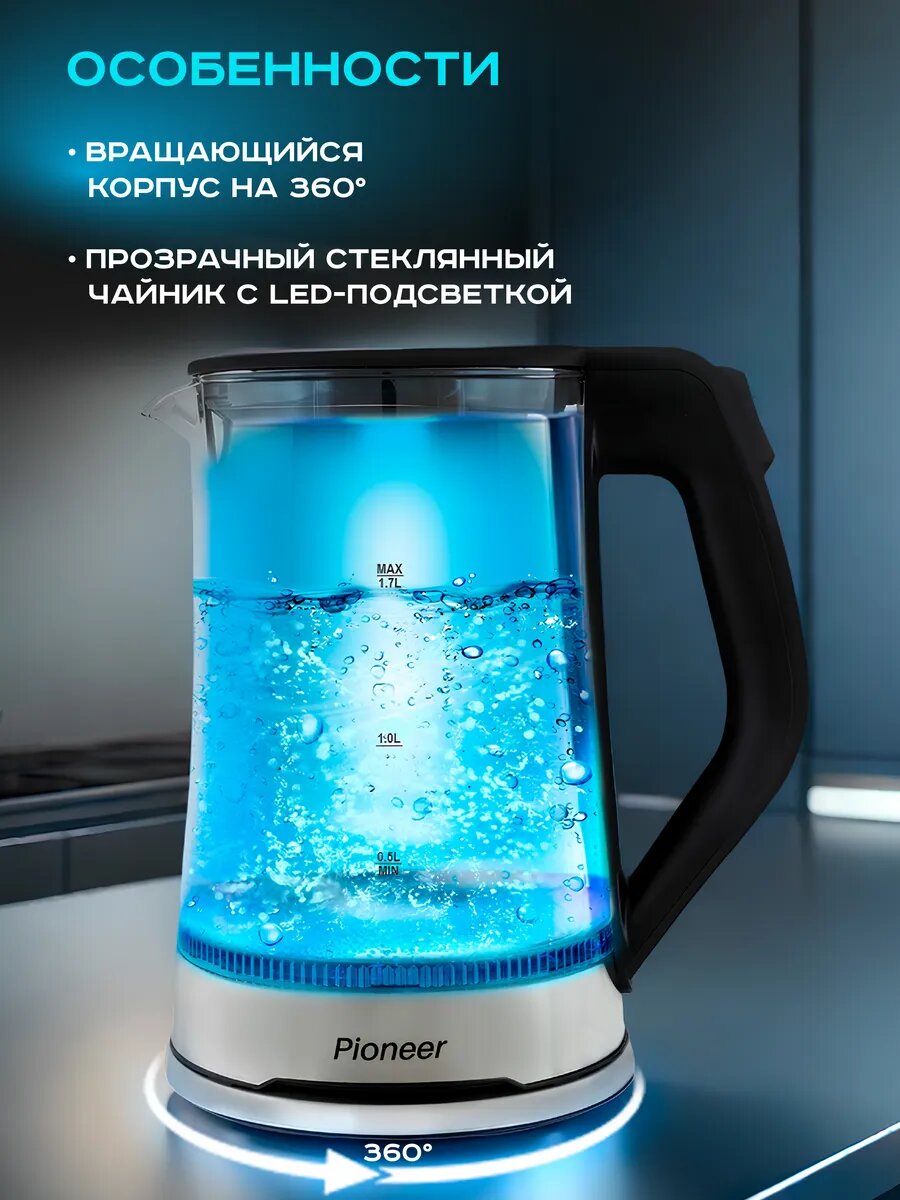 Электрический чайник Pioneer KE803G из термостойкого стекла с LED подсветкой, 1,7 л, 2200 Вт интересное:
