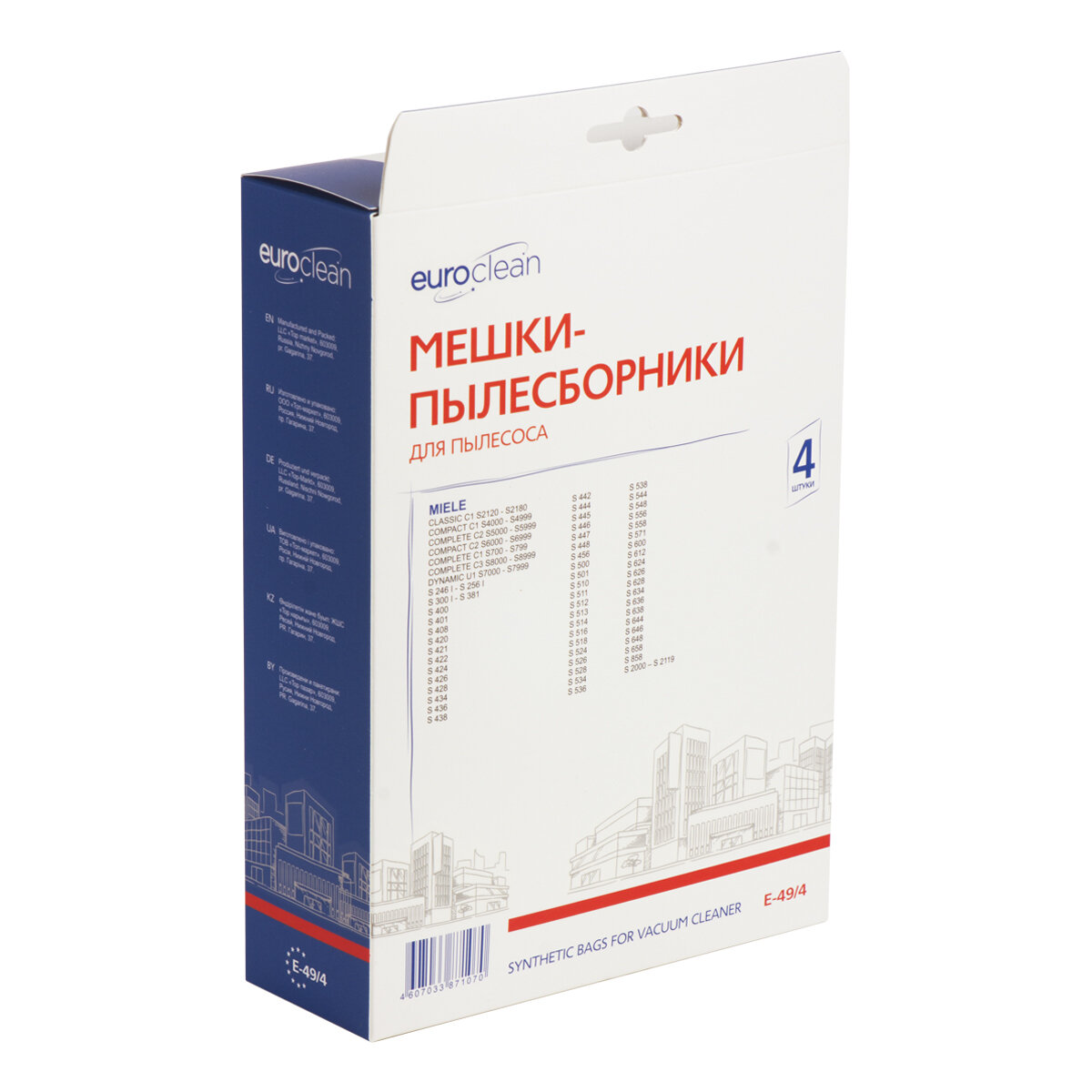 Мешки пылесборники для пылесоса MIELE, 4 шт, синтетические, многослойные, повышенной фильтрации, бренд: EUROCLEAN, E-49/4, Сделано в России интересное: